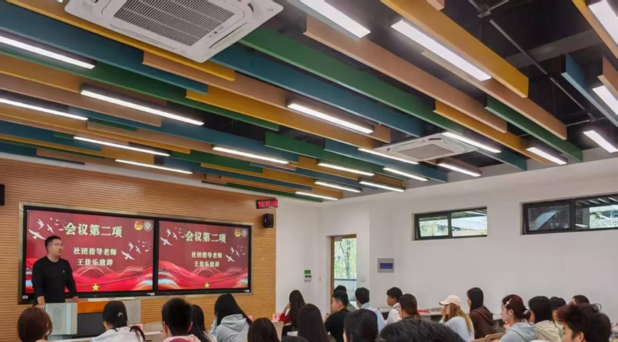 会议现场,社团指导老师王佳乐首先介绍青商筑梦社团是商学院下属的青年理论学习与实践社团,始终在党的先进思想引领下开展工作,是大家学习理论、践行使命的重要平台,核心目标就是助力新时代青年成长。社团要始终秉持“理论学习与思想引领并重,服务社会与锤炼品德结合”的理念,不搞虚功、只做实招。王老师强调了社团将围绕“党建+实践”开展活动,避免纯理论枯燥性,后期社团发展成熟,将会开展一些校外实践活动,通过多样化形式让党建工作“活起来”,保障成员的参与感与价值感。同时,明确了社团“党建+能力提升”的双重定位,王老师指出社团是青年学习党的理论、践行宗旨的平台,也是锻炼综合能力的“练兵场”。他对社团成员提出“学有所思、干有所获”的殷切期望,要通过科学规划与合理分工,帮助每个人找到适配自身的角色与岗位,切实避免“忙闲不均、人浮于事” 的现象,让每位成员都能在社团中发挥价值、获得成长。