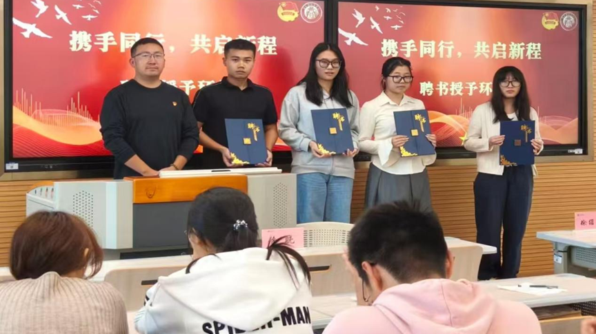 会议最后举行聘书授予仪式,王佳乐老师为各部门部长颁发聘书。明确了骨干成员职责,强化了社团发展使命感。