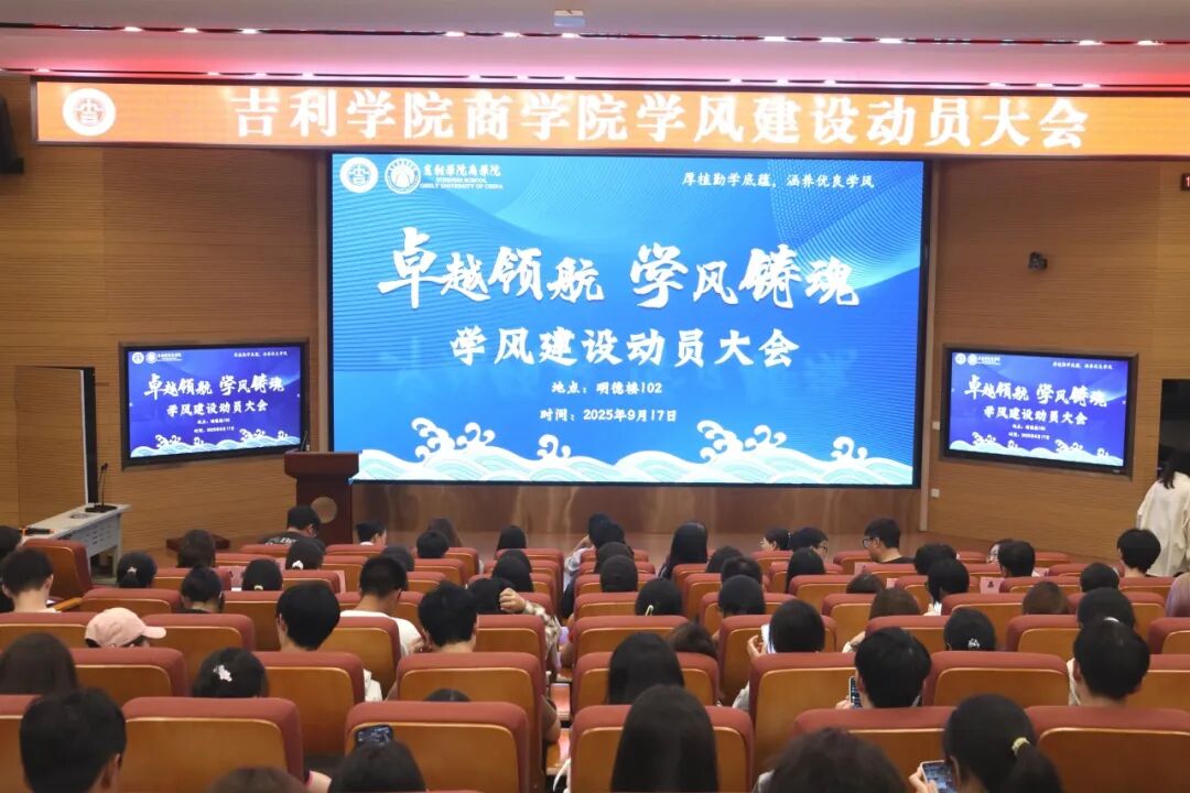 为深入贯彻新时代教育方针,推动商学院学风建设迈上新台阶,吉利学院商学院团总支•学生会于2025年9月17日下午13:00在M102成功举办了学风建设动员大会。本次大会聚焦学风建设核心任务,凝聚共识,为学院未来发展注入强劲动力。