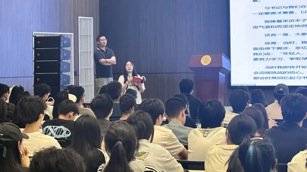 在班会课上,商学院辅导员王佳乐老师翻开《习近平与大学生朋友们》,精读“习书记来到学生社团活动中心”章节。他深入阐释书中情节,带领同学们感悟习书记对青年成长的殷切期盼。字里行间、一举一动,无不彰显对青年的深情关怀。这不仅是对书中青年的激励,更是鼓舞新时代学子踊跃参与社团,提升自我,传承文化,为民族复兴积极奉献。