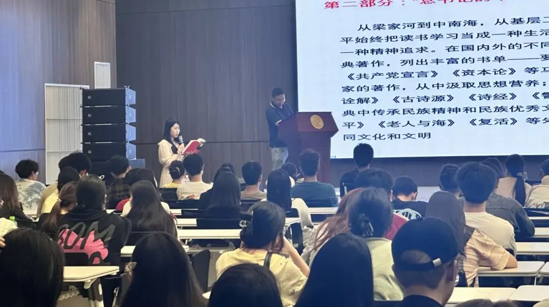商学院辅导员王佳乐老师以“总书记的书单”为引,将这份凝聚思想智慧的经典书目分享给同学们。鼓励同学们以书单为镜,结合专业学习与个人志趣,主动探索、筛选、沉淀,构建独具特色的个人书单。这不仅是知识体系的延伸,更是一次思想境界的升华,帮助同学们在经典阅读中汲取奋进力量,树立终身学习理念,让书香浸润心灵,以文化滋养成长,在新时代的浪潮中筑牢信仰根基,勇担时代使命。