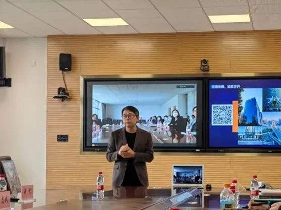 本次会议参会人员有数字媒体与表演学院院长助理杨漾、商学院院长助理赵源,商贸教研室主任卢玲,市场营销教研室主任王聆霁,以及商贸教研室、市场营销教研室骨干教师廖丽等9位教师,国贸、电商等专业学生共计40多人。会上,商学院院长张泽明热烈欢迎协会及企业的到访。