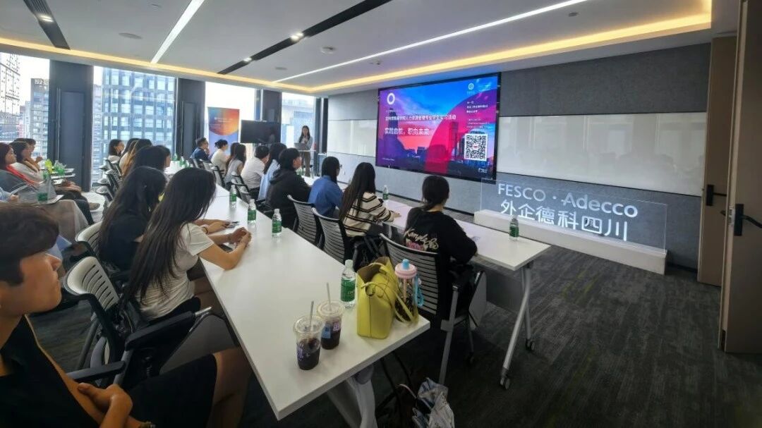 外企德科四川公司作为由北京国际人力资本集团与全球最大人力资源公司瑞士德科集团(Adecco Group)合资成立的专业机构,深耕行业45年,服务企业超2.5万家、员工超220万,在人力资源全场景服务领域具备丰富经验与行业影响力。活动伊始,企业相关负责人带领师生实地参观办公环境,详细介绍公司发展历程、业务板块与组织架构,重点讲解人力资源管理全流程运作模式,从通用外包、灵活用工到人事薪酬服务、招聘猎头,让学生直观了解HR岗位的实际工作场景与行业服务标准,打破理论学习与实际应用的壁垒。