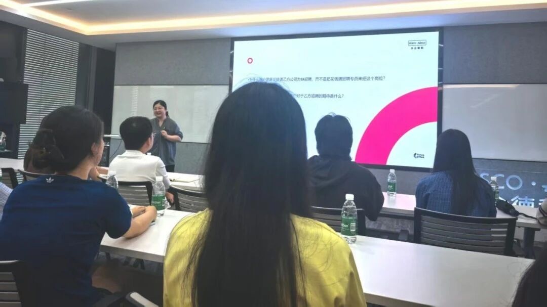 参观结束后,活动进入专题分享环节,三位行业内资深专家围绕人力资源核心领域展开深度解读。首先,外企德科四川公司业务高级总监周靖为“实践启航,职向未来”活动拉开序幕。周总以“基础理论+实践认知”为脉络,通过层层递进的提问直击人力资源实践痛点,引导学生结合理论思考解决方案,不仅让同学们深度掌握人力资源管理专业的运营逻辑,更针对准毕业生群体,细致分享了面试准备技巧,真正实现了从“纸上谈兵”到“事上知晓”的认知跨越。接下来,外企德科四川公司西区共享招聘中心负责人乔羽以“招聘价值与实战应用”为主题,结合服务字节跳动、华为、欧莱雅等国际化企业的案例,剖析招聘工作对企业业务增长、团队竞争力的关键作用,阐述HR如何通过精准招聘为企业创造长期价值;最后由公司法务内控部负责人王梅女士,聚焦“劳动法合规与风险防控”,通过企业规范协议规避纠纷的真实案例,解析用工管理中的法律风险点与合规要点,帮助学生理解法律框架下的人力资源管理边界;此外,企业专家们还结合自身从业经历,分享半导体、金融、生物医药等多行业的HR实践经验,为学生梳理职业发展路径,让学生受益颇多。