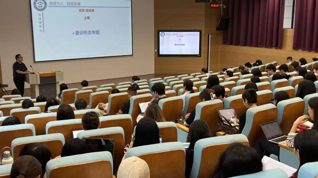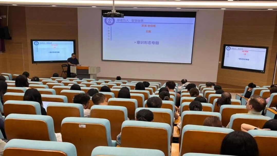 开学之际,为深入贯彻落实学校意识形态工作专题会议精神,积极应对校园意识形态领域的新形势与新挑战,9月2日商学院组织召开学院干部会议及全学院教师意识形态工作专题会,本次会议由商学院副院长徐绍埔主持。会议紧密结合国内外复杂形势及近期高校典型案例,深入剖析当前学院意识形态工作面临的问题,并对下一步工作作出全面部署。