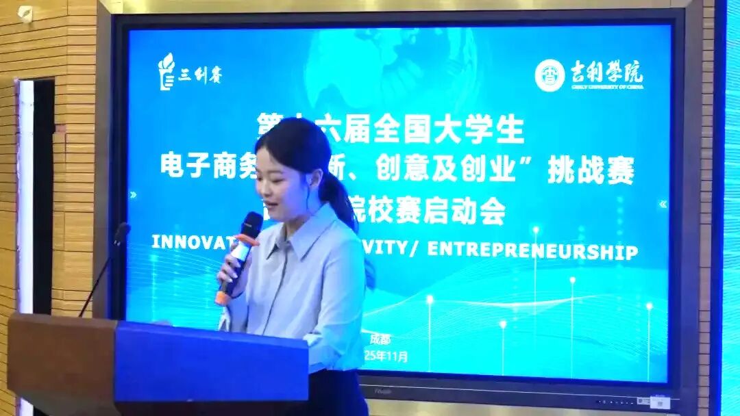 2025年11月26日,吉利学院明德楼102报告厅内气氛热烈、座无虚席,第十五届全国大学生电子商务“创新、创意及创业”挑战赛吉利学院校赛启动会在此顺利举行。本次活动由商学院、盛宝金融科技学院、创新创业学院与校团委携手承办,旨在号召全校同学踊跃参与赛事,点燃吉利学子的创新热情,锤炼创业实干技能与实践应用能力,助力学院科技成果加速落地转化,全力营造校园内敢闯敢试、勇于创新、乐于创业的浓厚氛围。