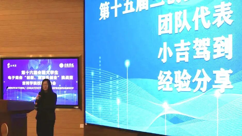 三创赛一等奖获得团队-小吉驾到团队代表上台分享三创赛参赛经验其中着重讲述参赛主题的确定、项目的商业计划、PPT的制作等方面的问题,针对性的为同学们给予了帮助。