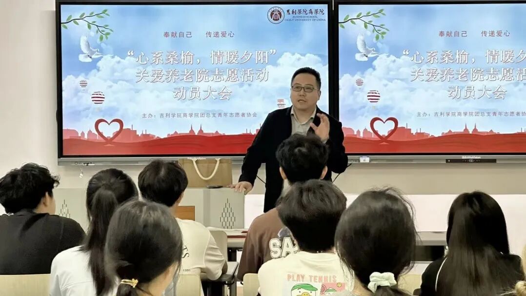 为弘扬中华优秀传统文化,传承尊老敬老的传统美德,增强青少年的社会责任感和志愿服务意识,商学院团总支青年志愿者协会于2025年10月14日在立德楼204教室开展了以“心系桑榆,情暖夕阳”关爱养老志愿活动为主题的动员大会。