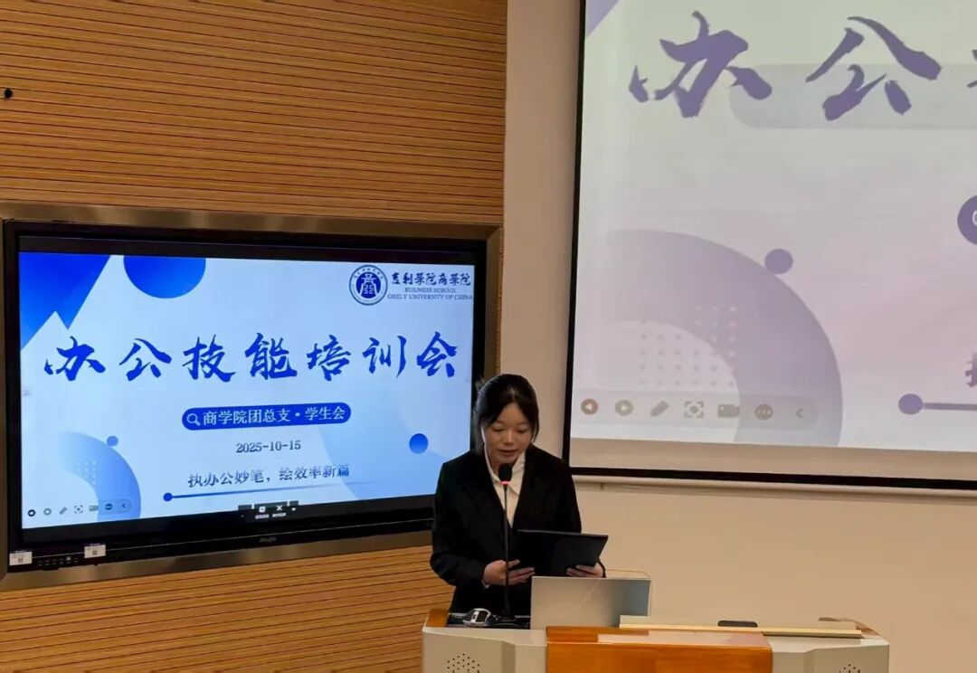 为进一步夯实团学工作基础,提升团学干事办公实务能力,打造一支“会干事、能干事、干成事”的学生骨干队伍,吉利学院商学院团总支·学生会于2025年10月15日13:00在明德楼105教室举办商学院第五届办公技能培训会。本次培训聚焦实用技能,覆盖Word、Excel、PPT三大办公核心软件,为同学们带来一场干货满满的“技能赋能”盛宴。