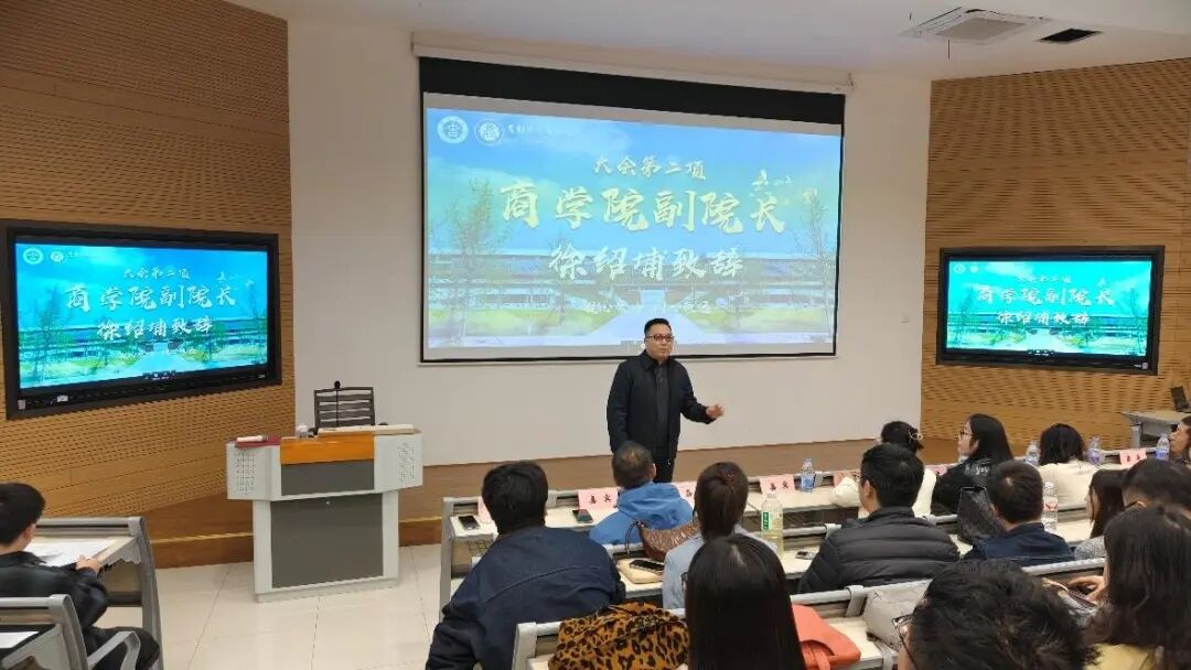 最后,商学院副院长徐绍埔发表致辞,深刻阐释班级建设对学生成长成才过程中的关键价值,明确学校‘以生为本、协同育人’的整体目标,为辅导员、班主任与班委三方协同推进班级建设、凝聚育人合力提供根本遵循与行动指南。