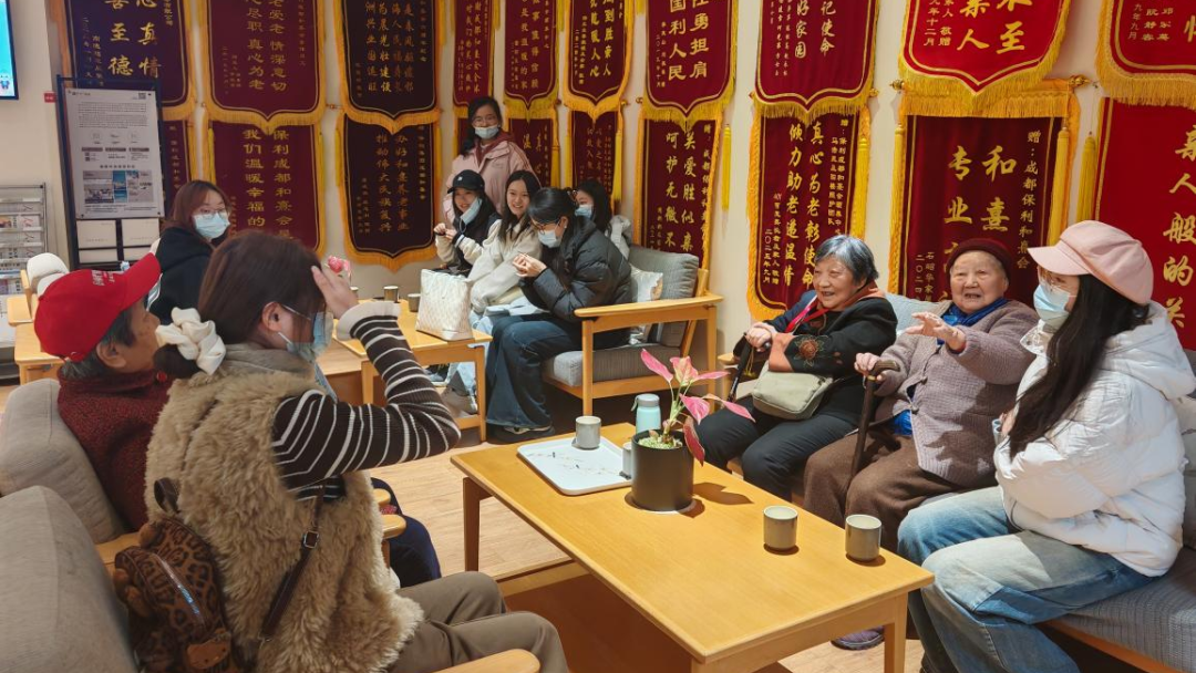 除了户外漫步,志愿者们还围坐在老人身边,与他们促膝长谈。聊天的话题天南海北,从老人们的青春年华、工作经历,到如今的日常生活、兴趣爱好,再到志愿者们的大学生活、未来规划。青年人的朝气与长者的智慧在交流中碰撞、融合。老人们仿佛有说不完的话,志愿者们则是最专注的倾听者。一个肯定的眼神,一句关切的问候,一次会心的微笑,都在无声地传递着温暖与尊重。这些看似平常的交流,有效地排解了老人们的孤独感,让他们感受到了来自社会大家庭的关怀与温暖。