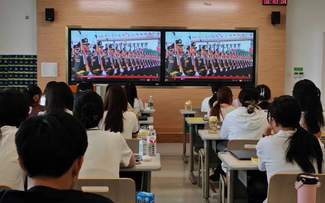 2025年9月3日,纪念中国人民抗日战争暨世界反法西斯战争胜利80周年阅兵仪式在北京天安门广场隆重举行。我校组织全体学生通过教室集中观看、宿舍自主观看等多种方式收看了阅兵仪式直播,共同感受祖国的强大力量和民族自豪感。
