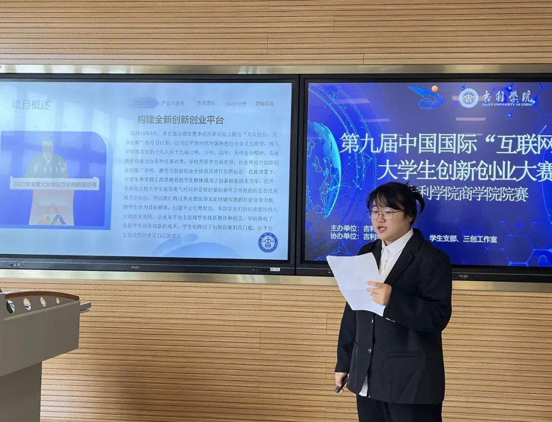 为鼓励商学院学子发挥创新创业精神和实践能力,探索新业态、新模式,同时贯彻我校校训:“走进校园是为了更好地走向社会”,2023年5月11日商学院以路演和答辩相结合的形式在明德楼341、342教室举行了第九届中国国际“互联网+”大学生创新创业大赛商学院院赛。