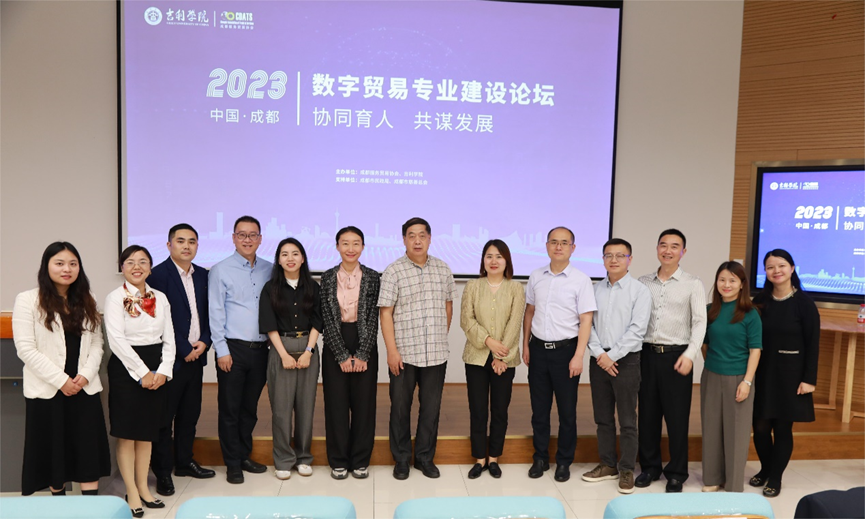 在圆桌论坛环节中,成都服务贸易协会、成都市跨境电子商务协会、成都信息工程大学、西南民族大学、吉利学院、普华永道数智科技成都有限公司、成都百都科技有限公司、成都正业佶祥平行汽车销售有限公司、四川渡洋公司的与会代表就数字贸易产教融合实践,如何将教学与实践需求有机结合,培养更加适应市场人才的一系列问题展开深入讨论,将此次会议推向高潮。