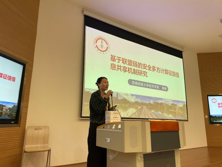 西南民族大学经济学院副教授,四川大学经济学博士高锦分享了基于联盟链的安全多方计算征信信息共享机制研究,为参会人员呈现了关于信息共享与安全的最新研究成果。