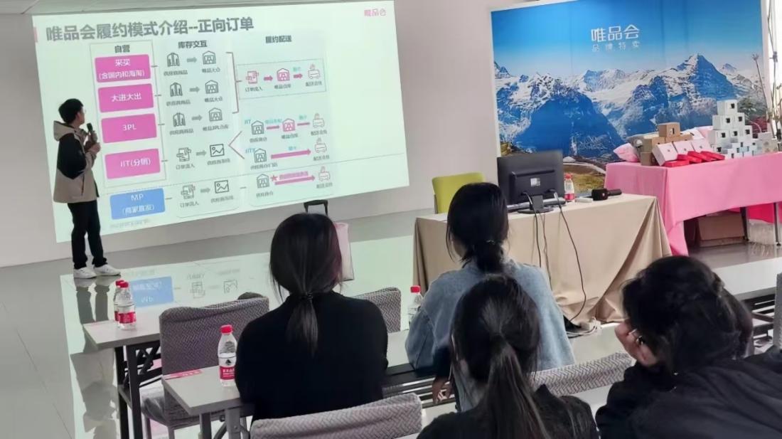 当天上午同学们首先体验了唯品会APP的使用过程,并分享了各自的线上购物体验。下午两点,实习活动伊始,学生们参观了唯品会的企业文化展示区,深入了解了唯品会的发展历程、组织架构和品牌特卖的氛围。随后,他们走进了品牌合作展示区,近距离接触各大品牌的合作伙伴,并了解了商品来源与合作机制。