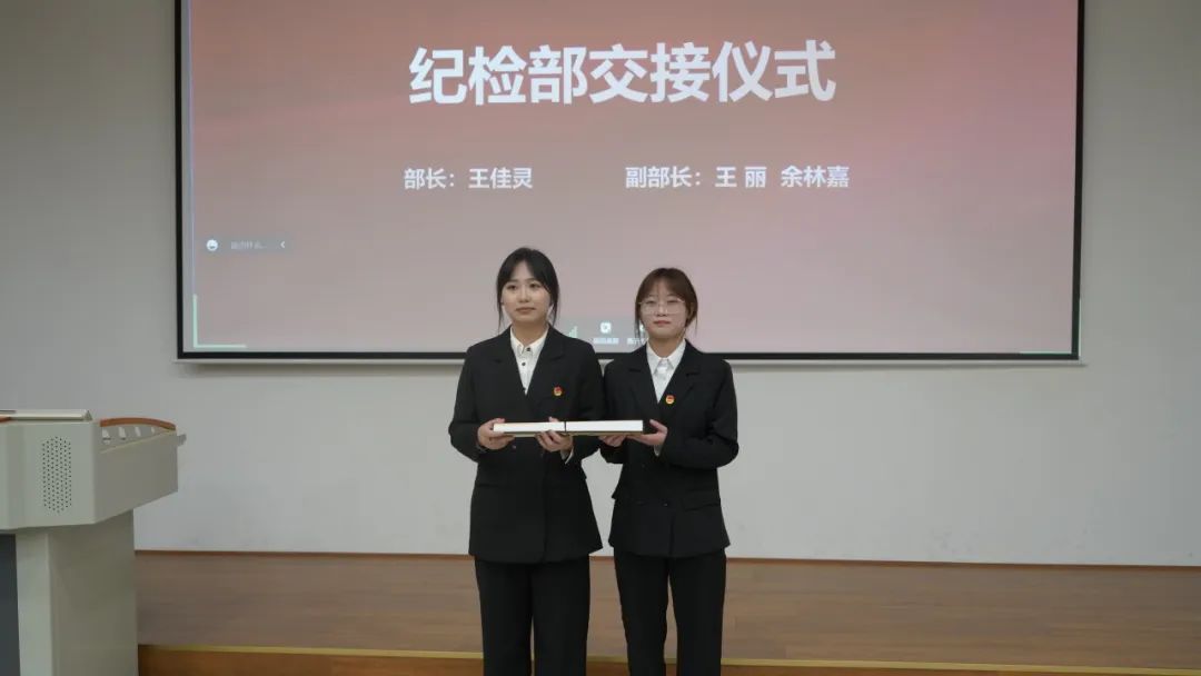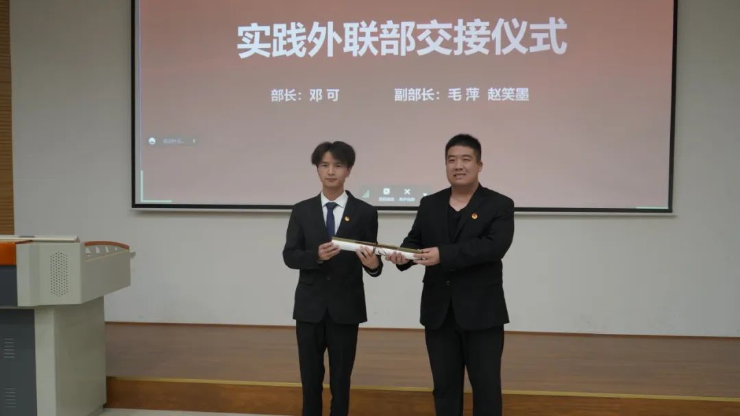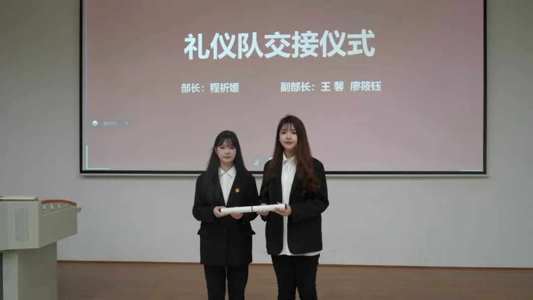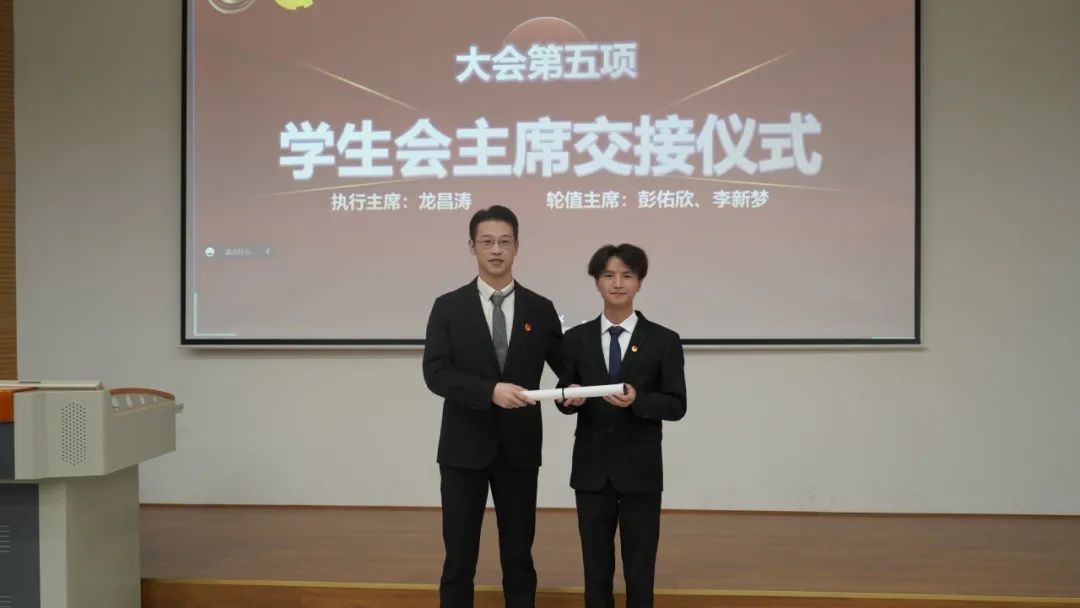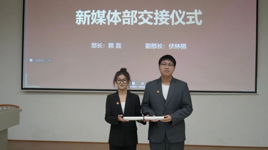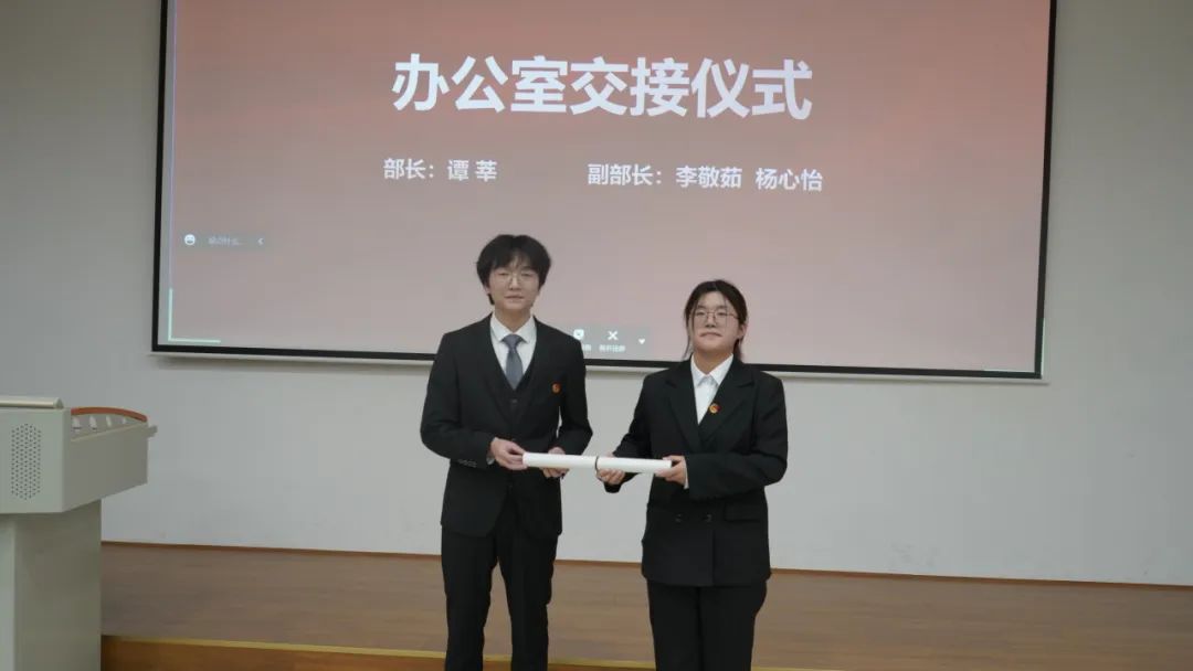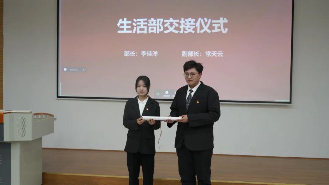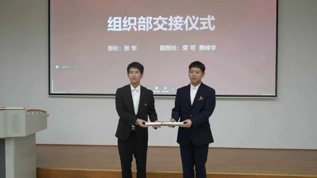 随后,第三届团总支、学生会主席团及各部门干部为第四届团总支、学生会新任主席团成员及各部门新任干部进行交接仪式。