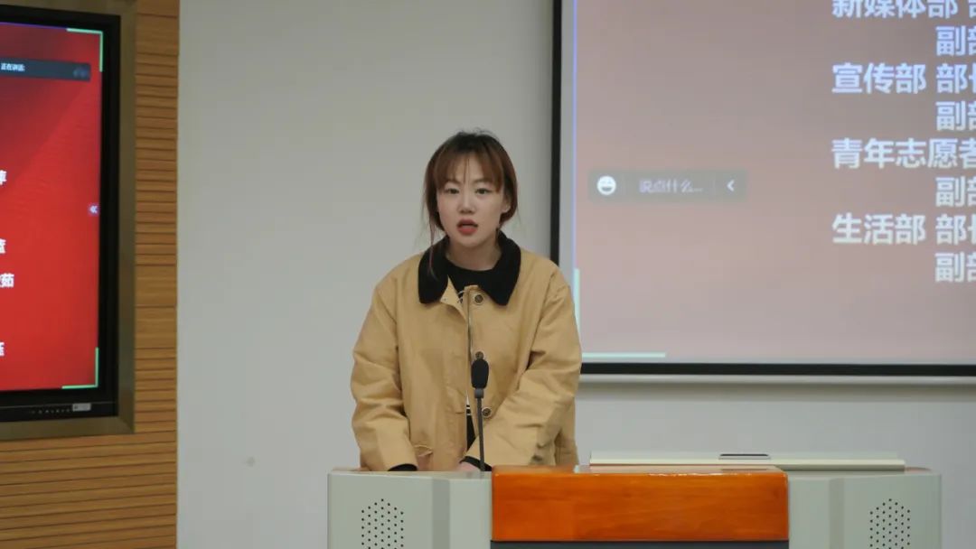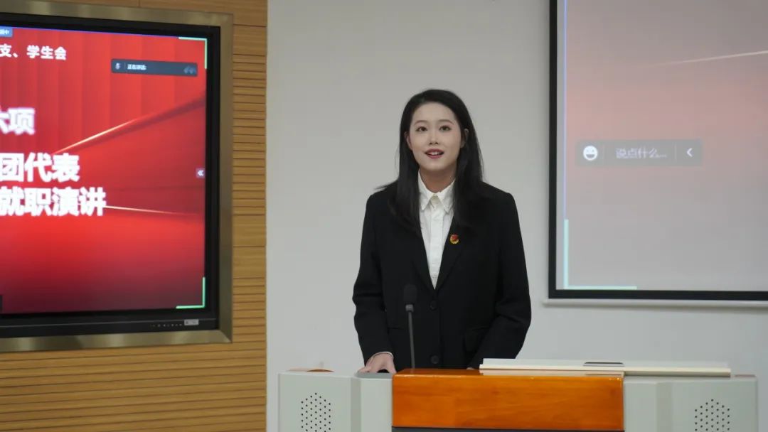 商学院团总支新媒体部部长赖磊同学代表新一届团学各部门干部发言。赖磊同学首先感谢了大家的支持,并表示将以此为动力带领自己的部门,与其他部门联合办好活动,记录商学院的高光时刻。赖磊同学也号召新加入的每一位同学积极参与到部门的工作中,不做“旁观者”,希望大家同心聚力,共建和谐商学院!
