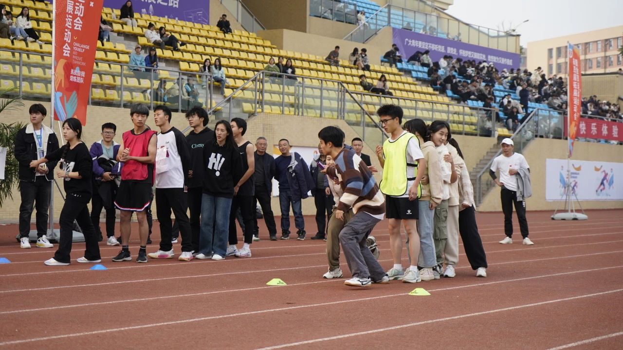 田径场上过河拆桥、套圈跑、投球等智勇闯关项目现场一派紧张热烈的欢腾景象,运动员们用拼搏与汗水为自己定格下热血青春里的闪光瞬间,以努力与奋斗为挑战画下深刻的句号。