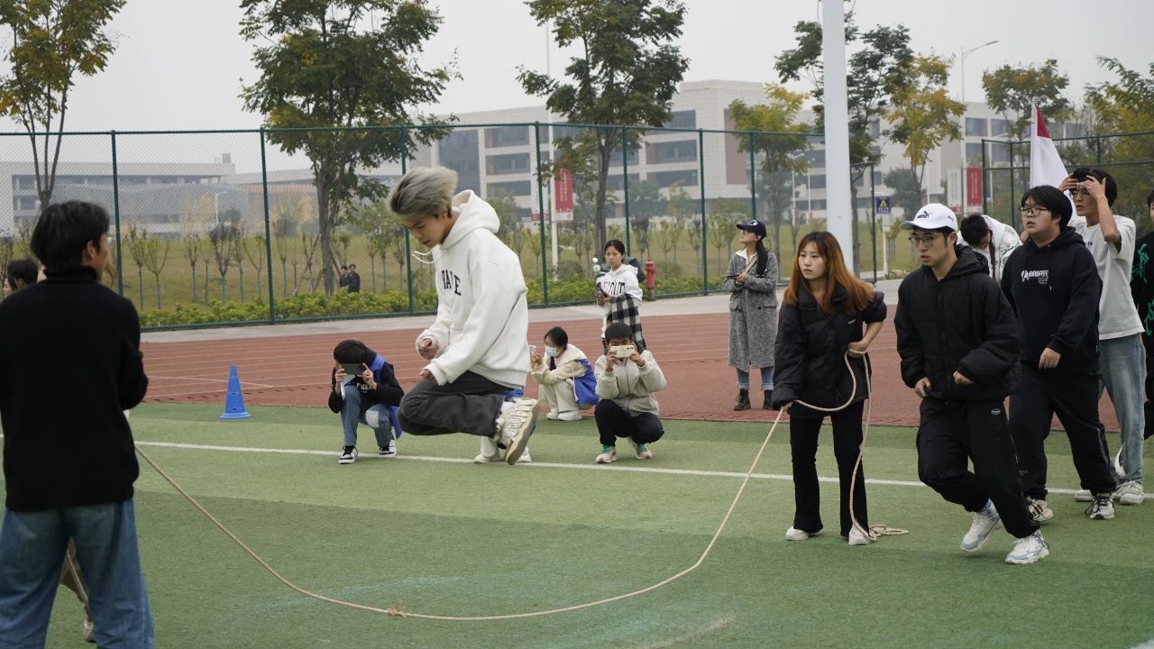 腾空而跃,跃出力量,跳出希望,立定跳远落地的瞬间阵阵惊叹,是个人的胜利也是商学院的荣誉。