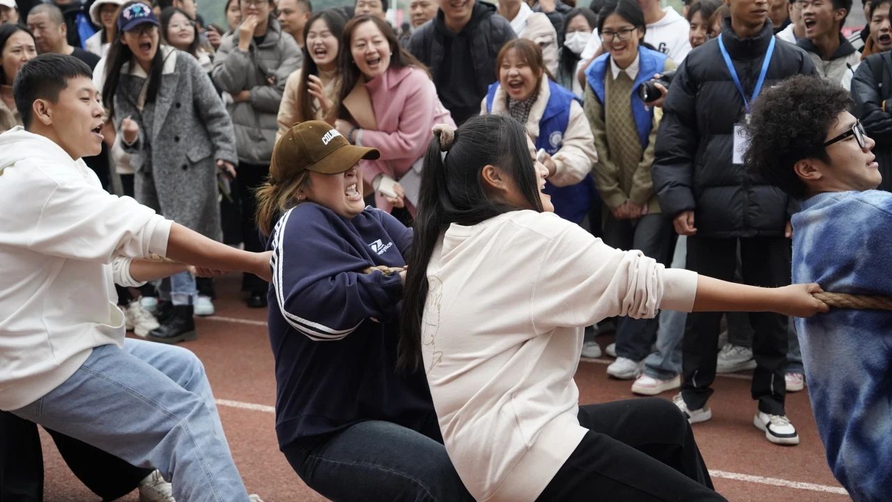 商学院学生拔河比赛,团结拼搏,荣耀时刻!在比赛中,同学们紧握绳索,挥洒汗水,为团队荣誉而努力。祝贺他们荣获第一名的好成绩!