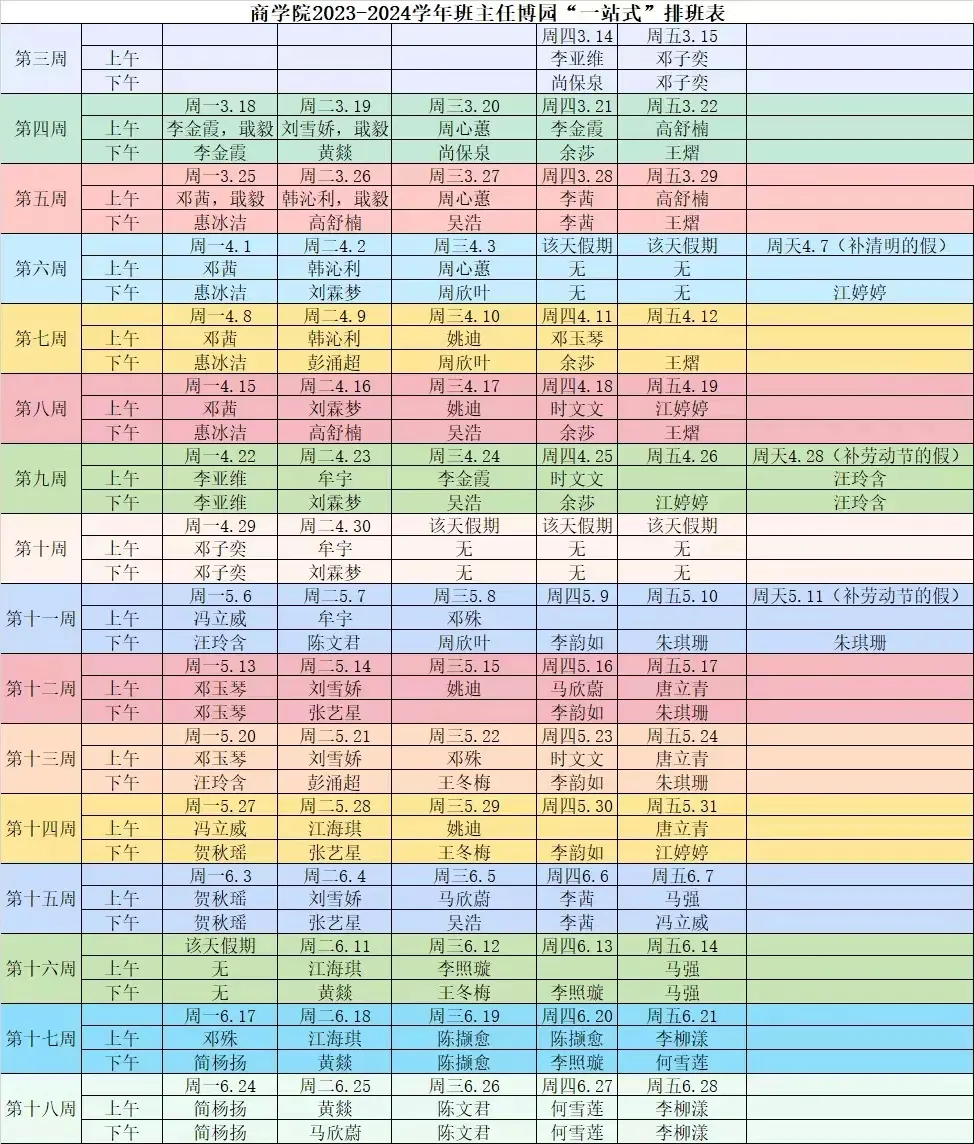 同学们可以保存班主任的排班图片,根据自己和老师的时间安排前往办公室咨询。