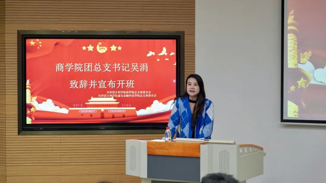 商学院团总支书记吴涓号召此次培训营的广大学员们,要坚持理论与实践相结合的学习理念,以提升自我的政治觉悟与思想水平,树立正确的价值观念,让青春脉搏与时代同频共振。